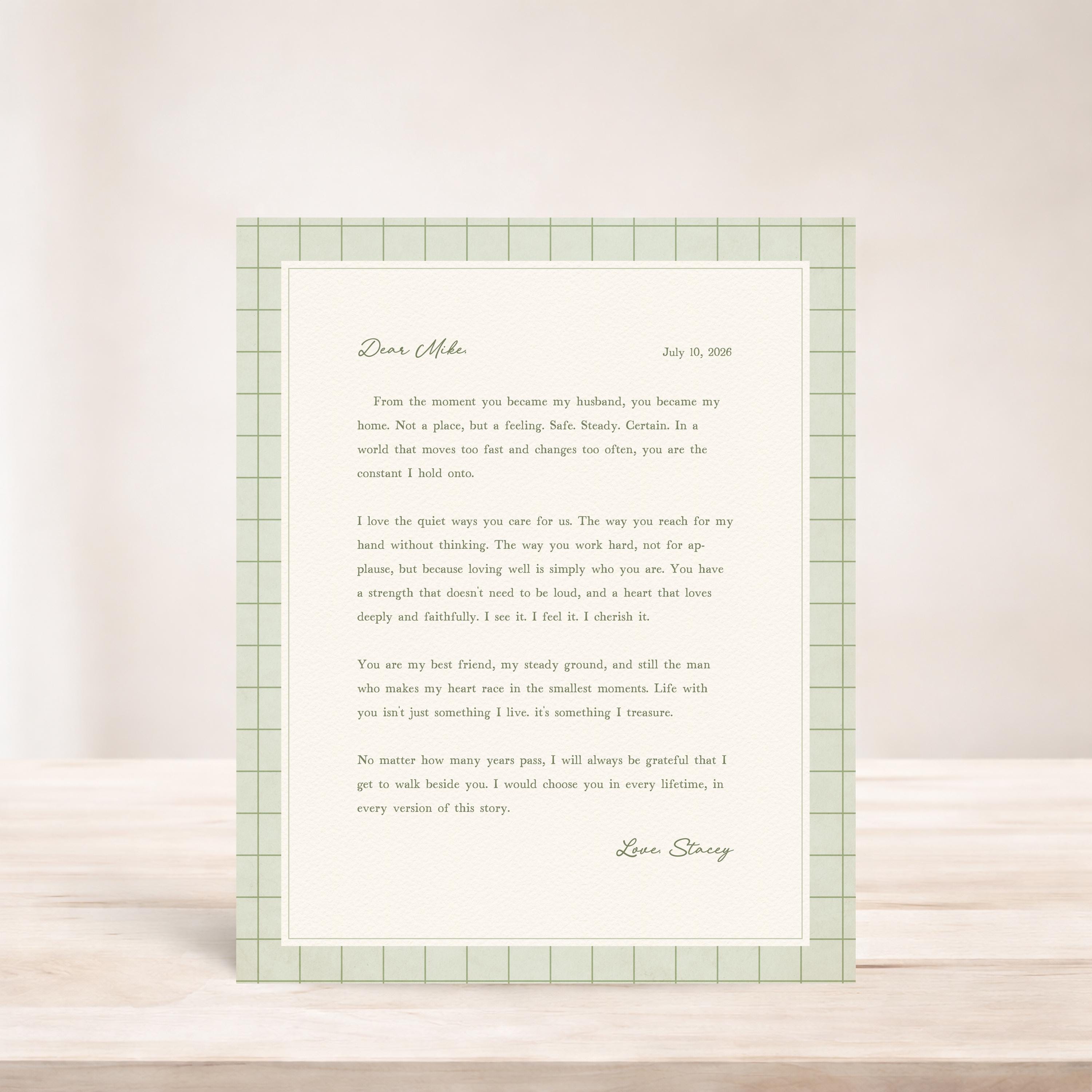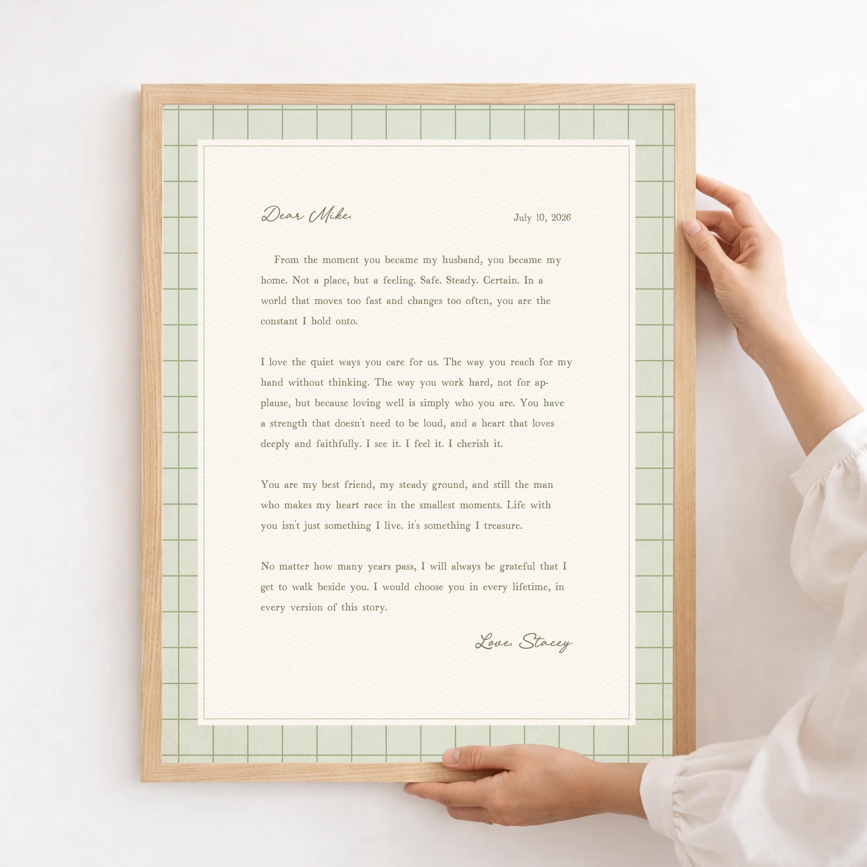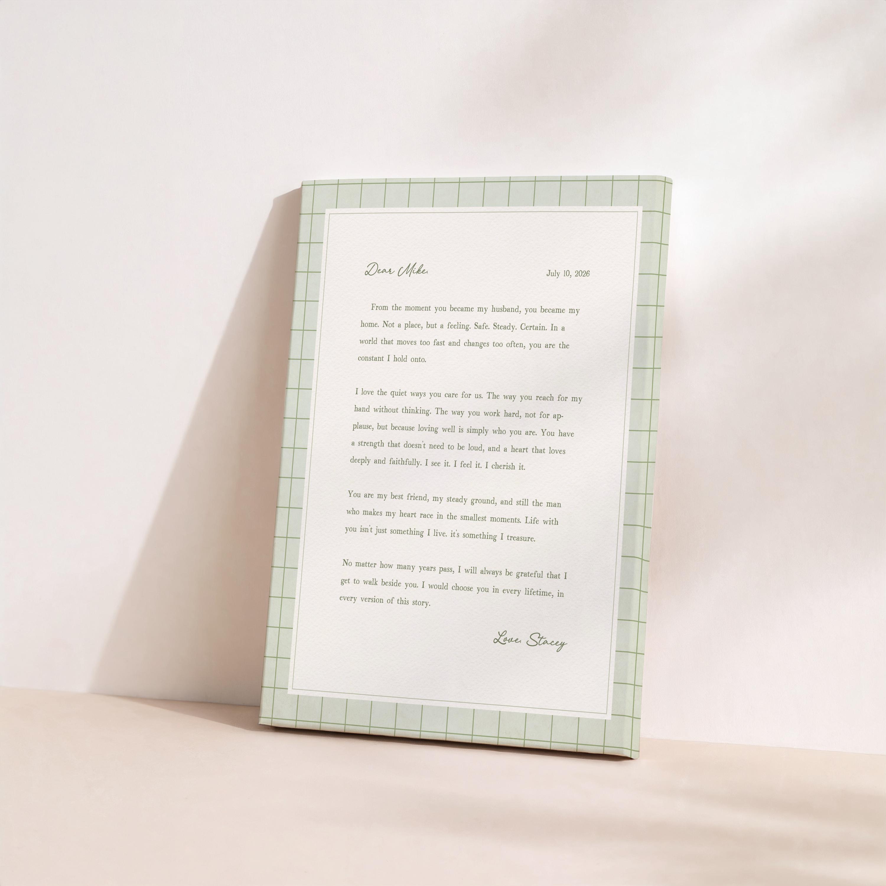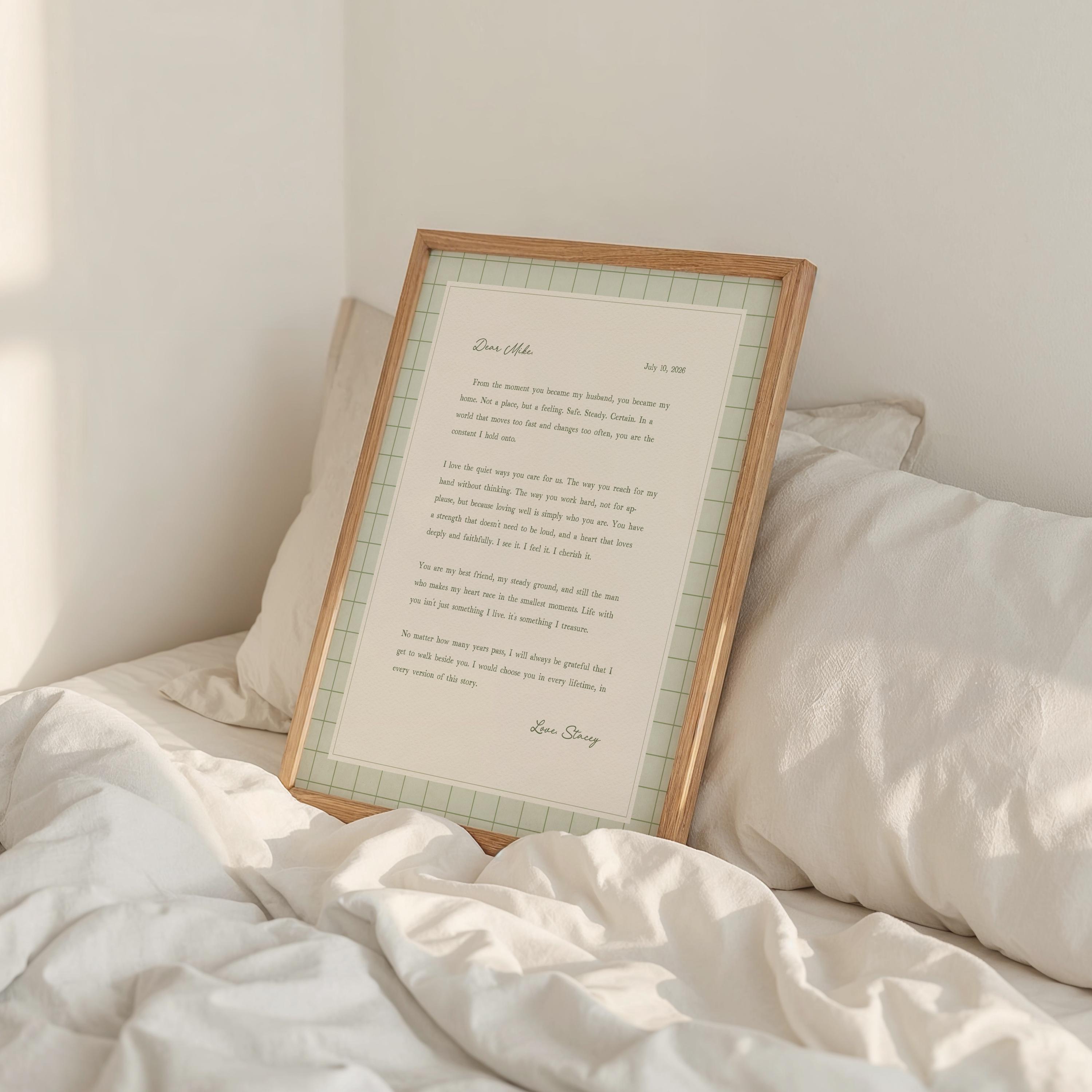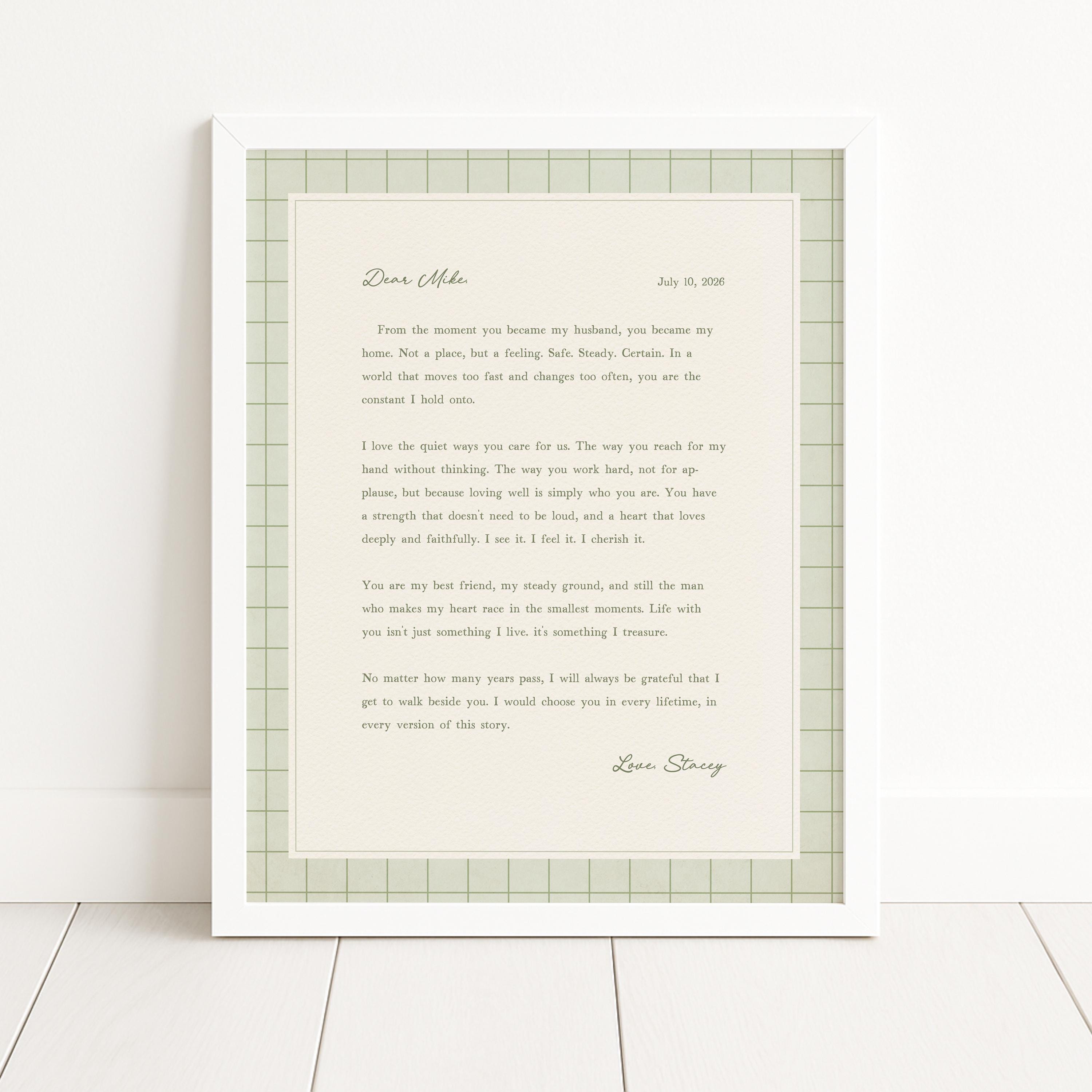 Personalized letter art for husband. A heartfelt personalized letter designed to celebrate your love. This custom message wall art transforms your words into a timeless keepsake. Choose your own words or keep the message as shown. It's up to you!