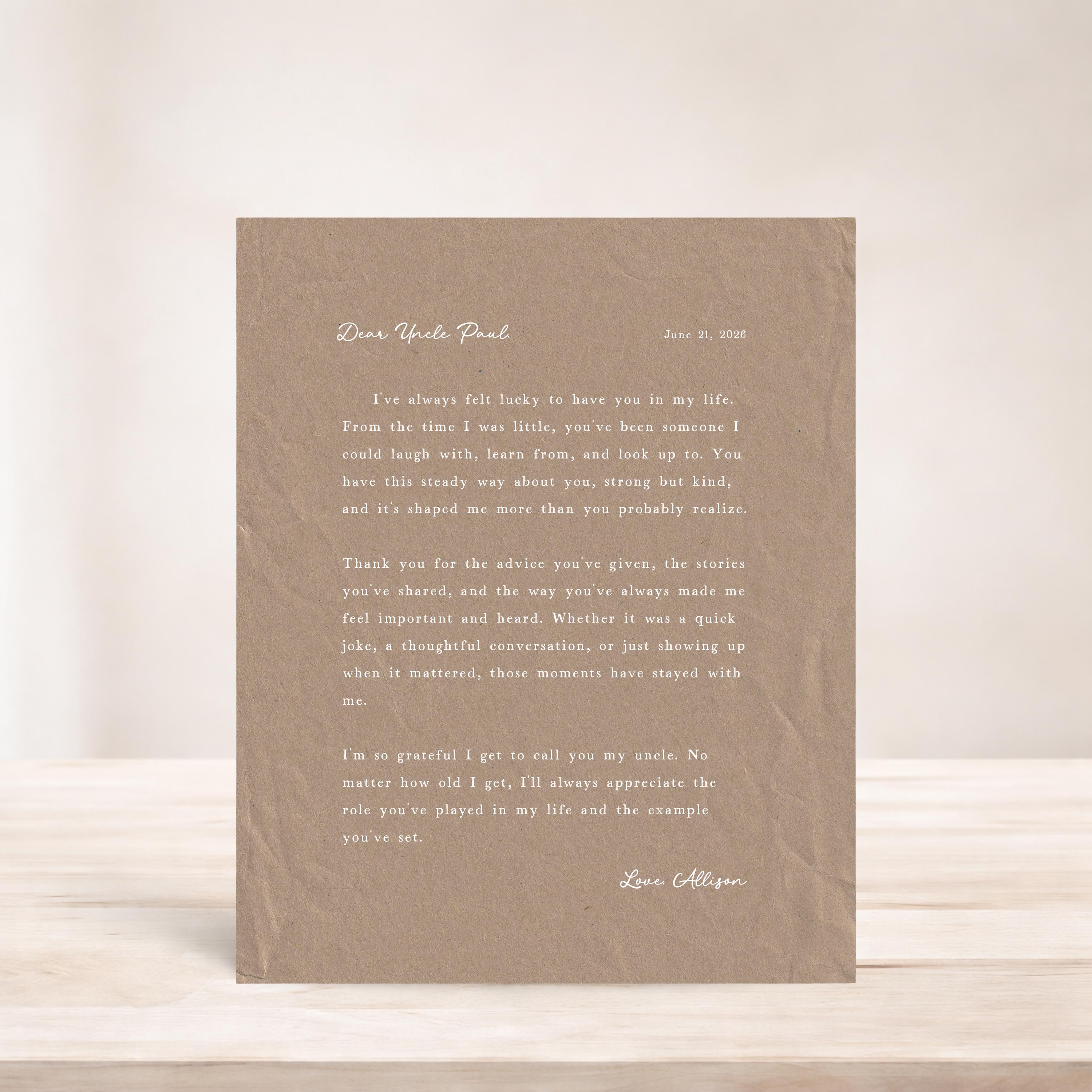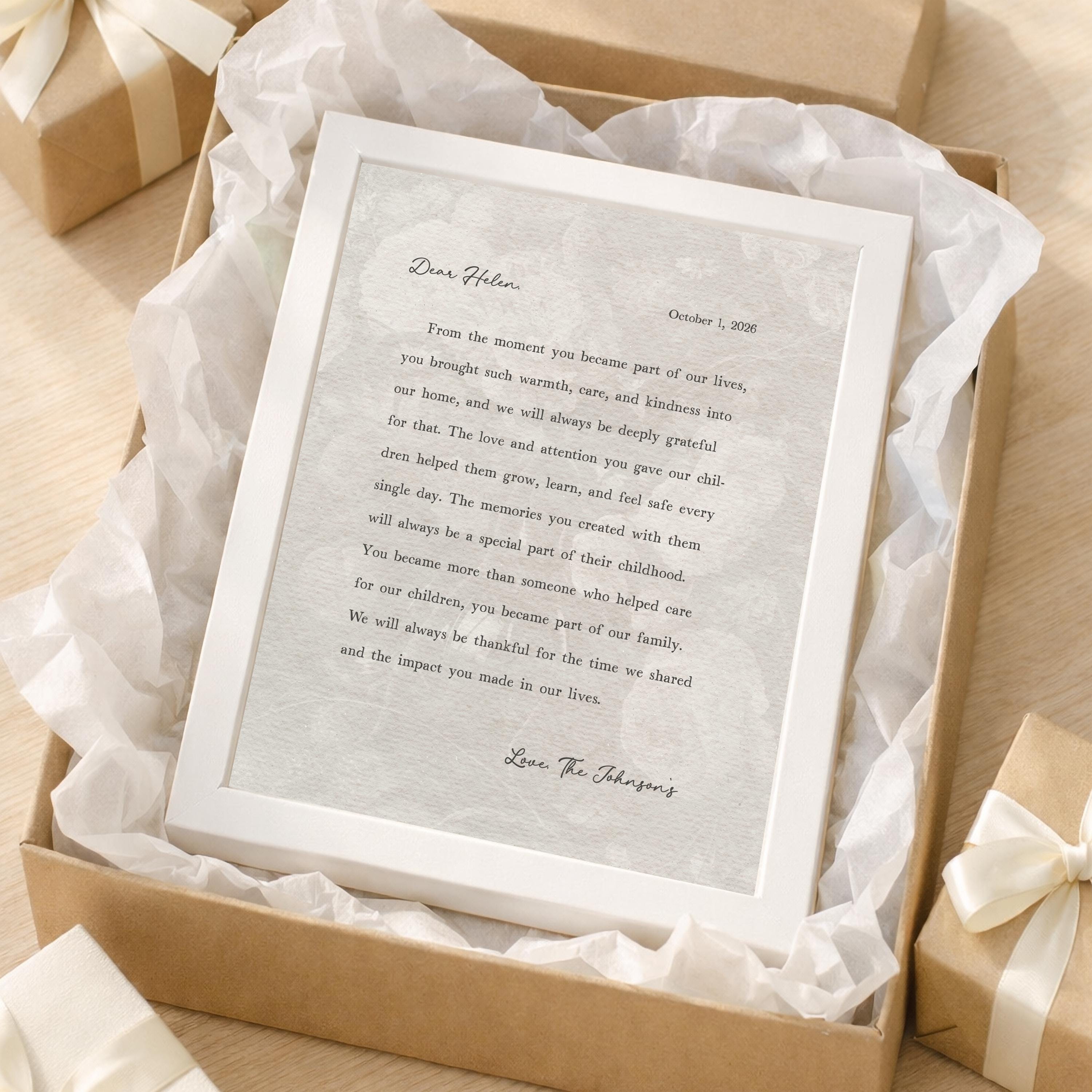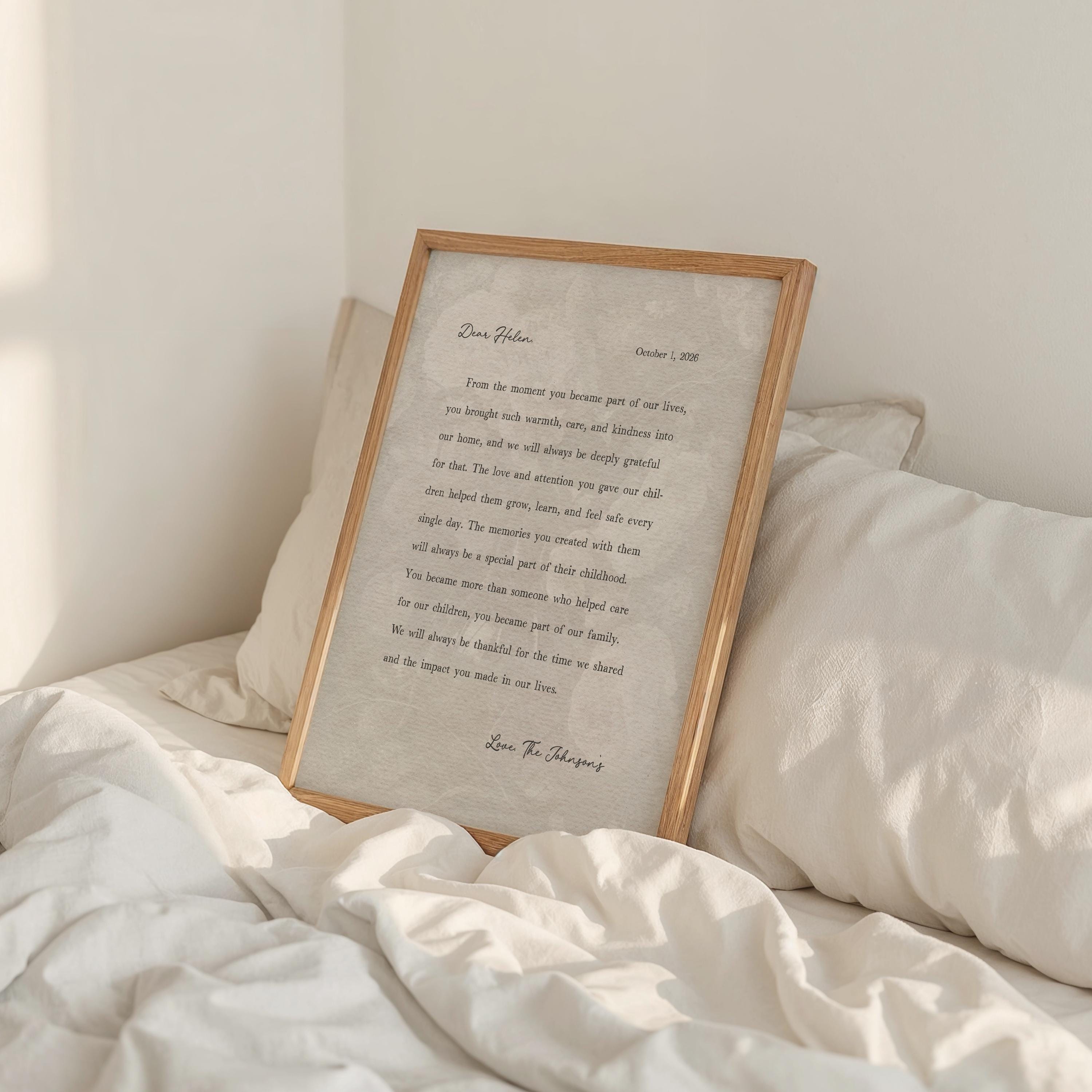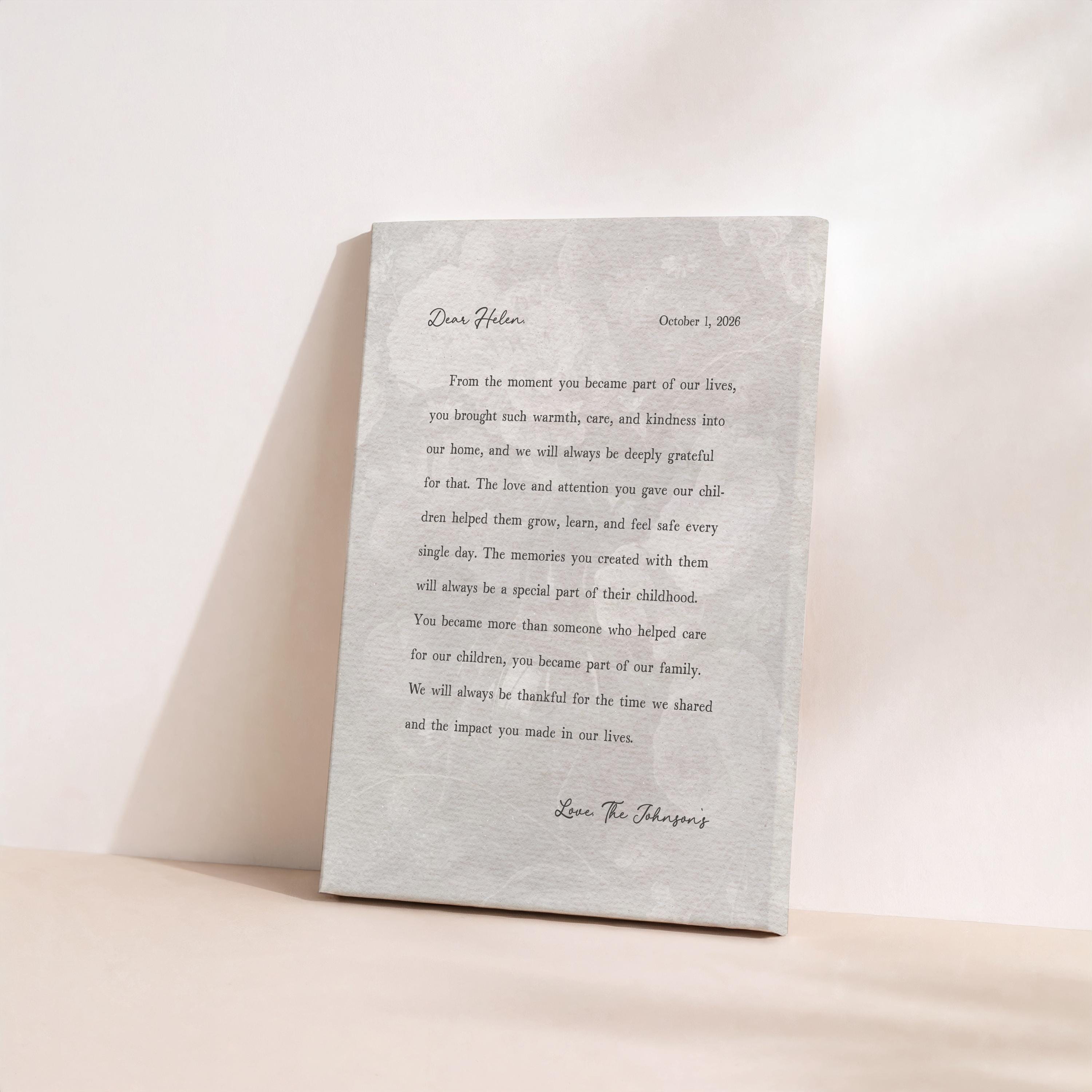 Letter to Nanny. A heartfelt personalized letter designed to celebrate a special Nanny. This custom message wall art transforms your words into a timeless keepsake. Choose your own words or keep the message as shown. It's up to you!