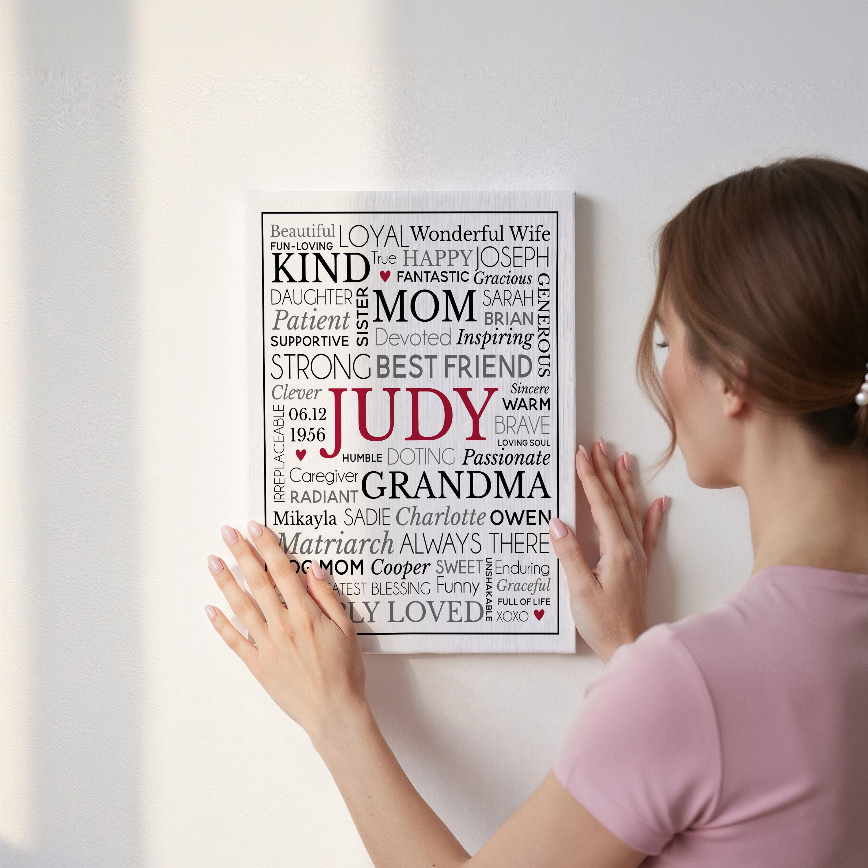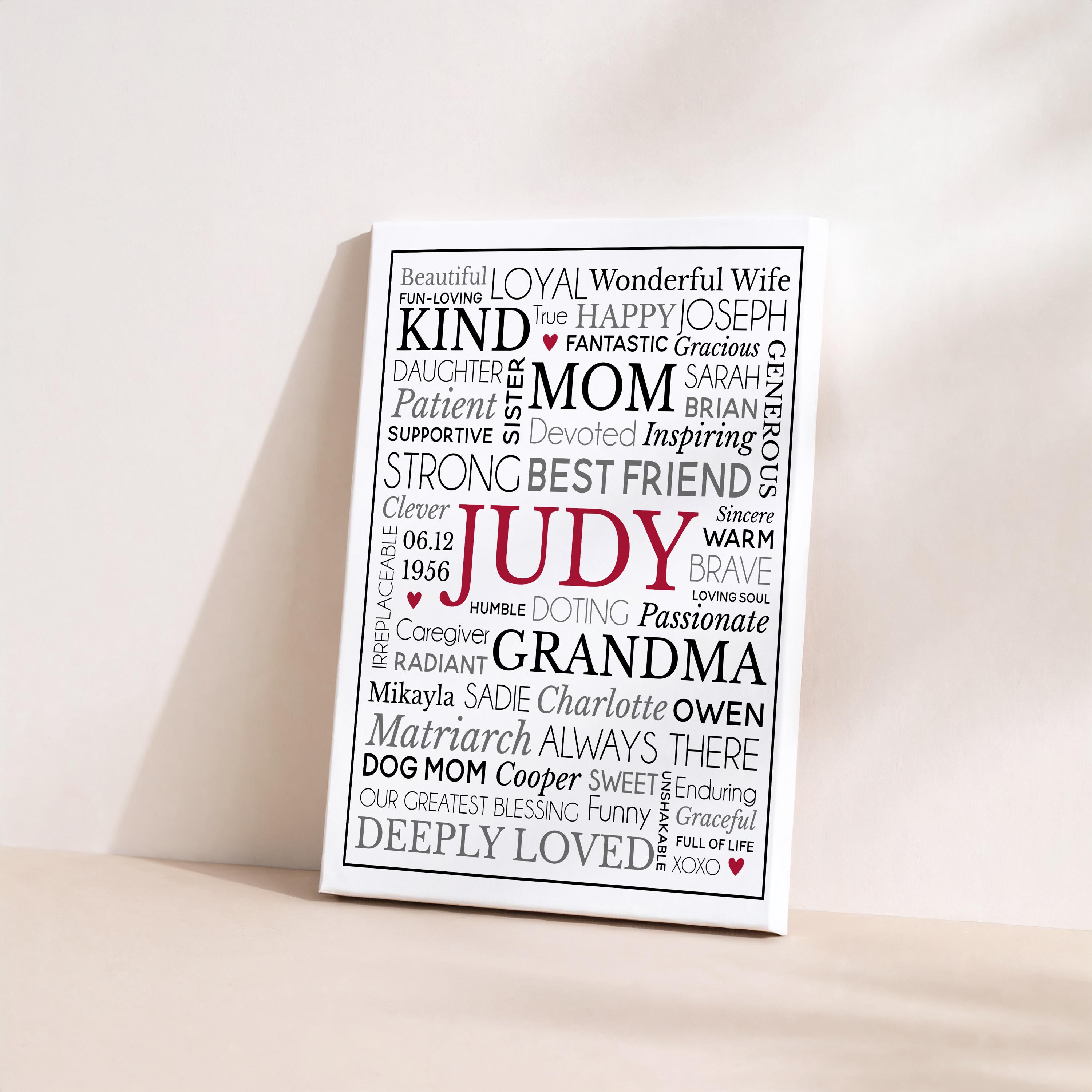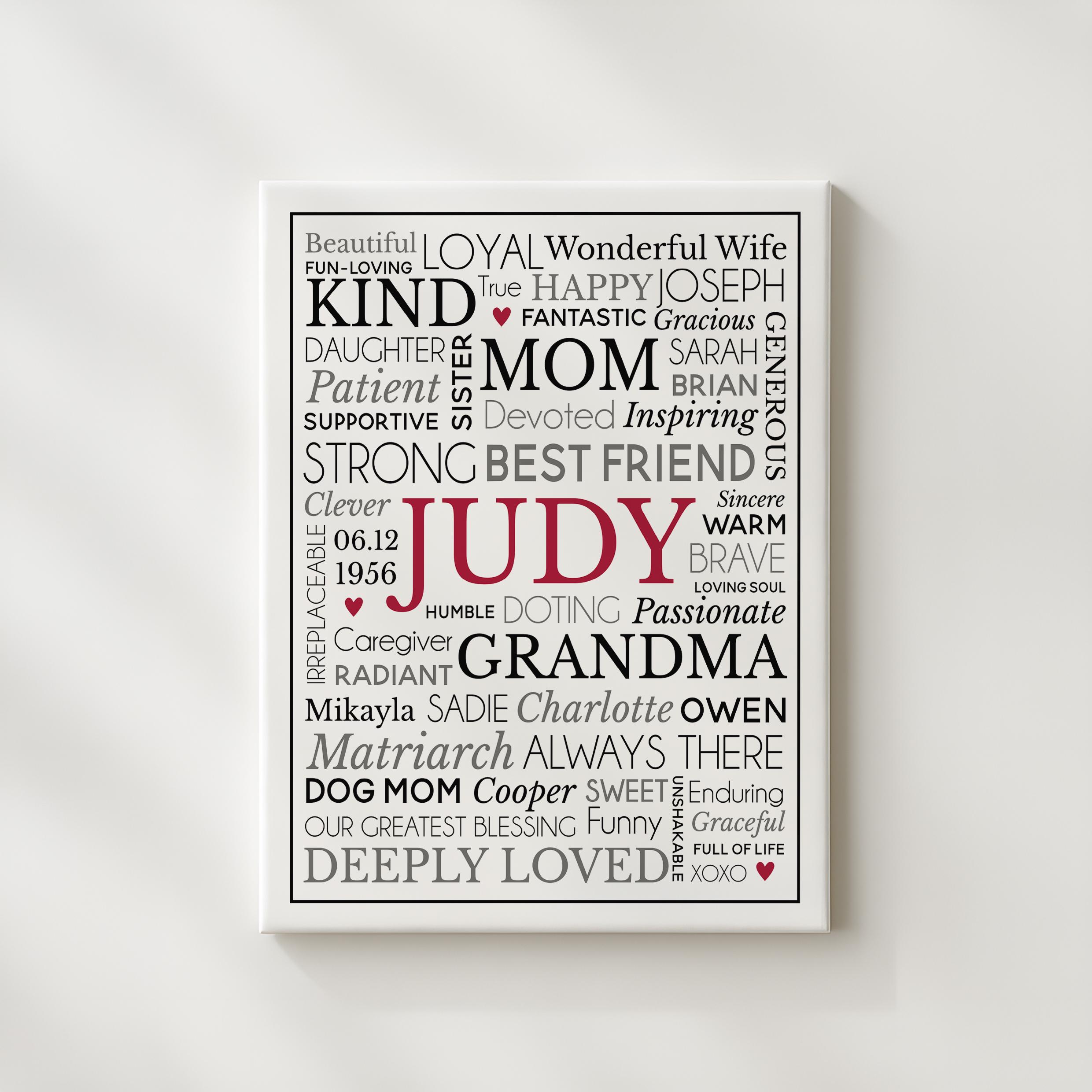 Custom Word Cloud Print or Canvas: Personalized Birthday, Mothers Day Gift Idea for Women